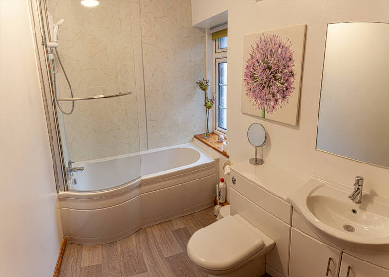 Upstairs there are 3 bedrooms (1 double, 1 twin and 1 single) and a bathroom. The newly installed bathroom has a bath with shower over, basin and WC.